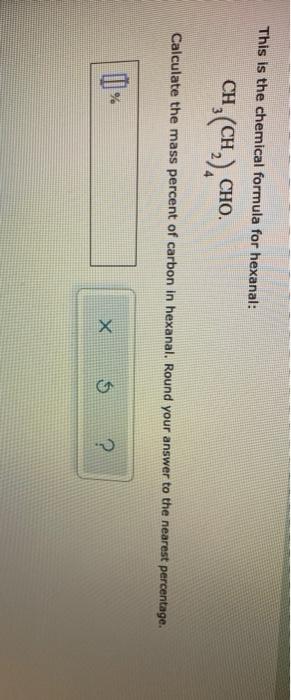 Solved This Is The Chemical Formula For Hexanal Ch Chz Cho Calculate The Mass Percent Of Hydrogen In Hexanal Round Your Answer To The Nearest Percentage