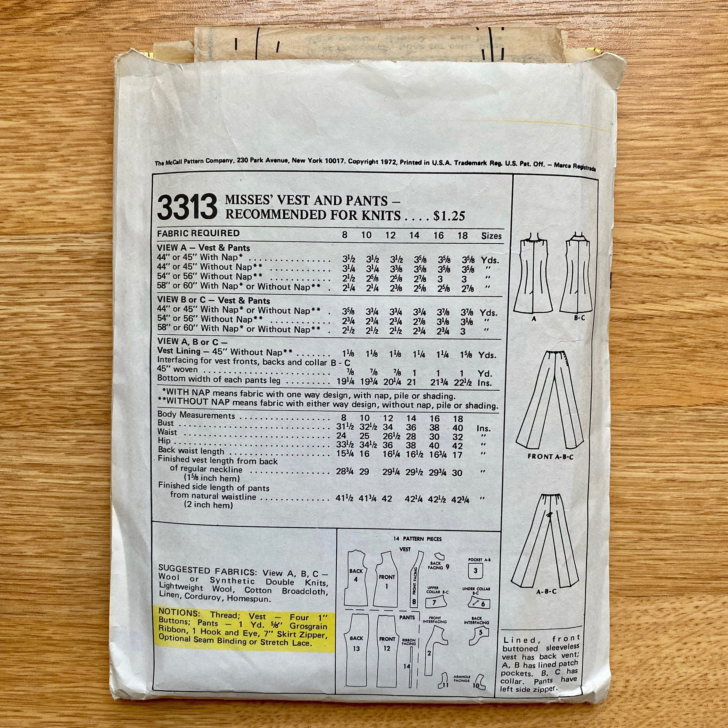 1970s Mccall S 3313 Pattern For Misses Vest Pants Etsy